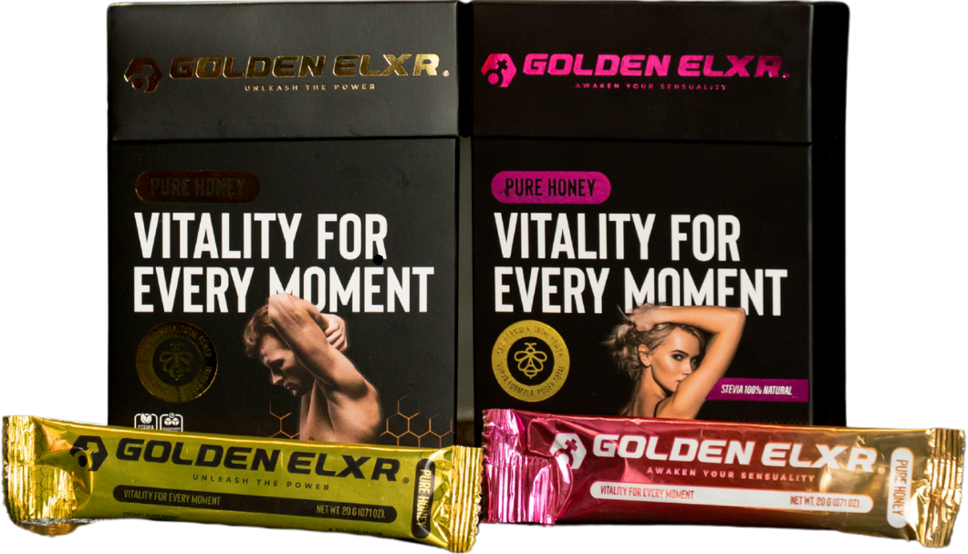 Golden ELXR WOMEN es una miel energizante natural formulada para elevar tu vitalidad, enfoque y bienestar femenino. Contiene miel de abeja, maca, camu camu, damiana, fenogreco, guaraná, pectina y vitaminas que apoyan el equilibrio hormonal, la energía diaria y el estado de ánimo, aumentando notablemente la libido.